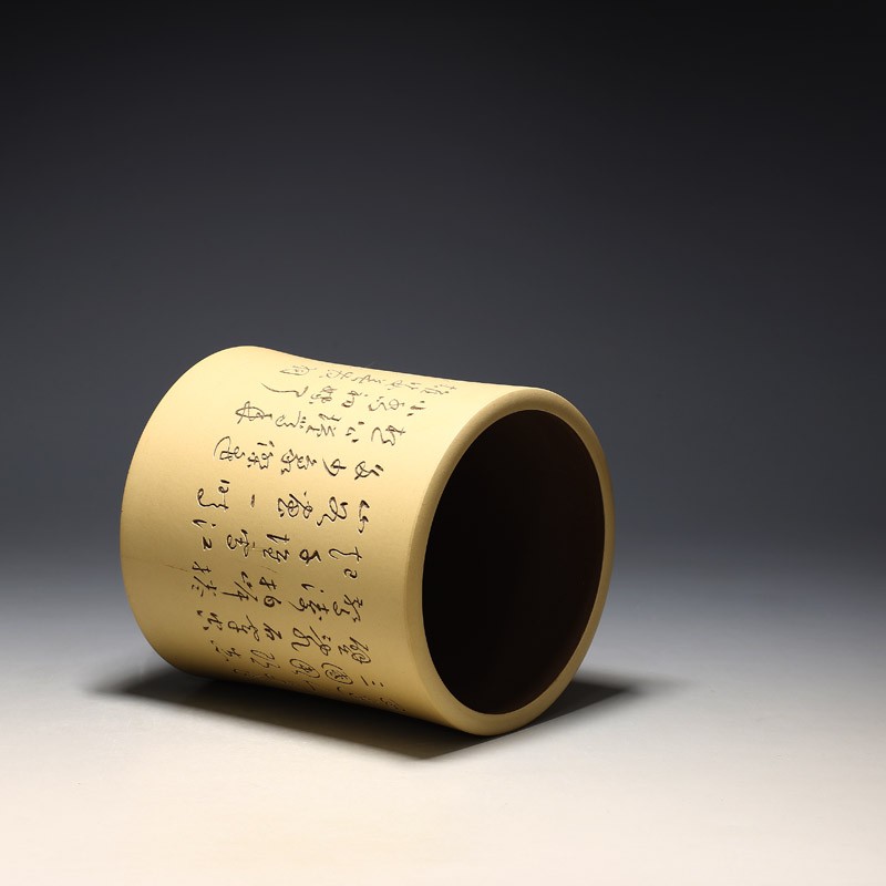 宜兴紫砂笔筒 石陶朱炳浩 草书圆笔筒