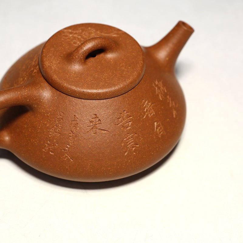 紫砂壶 宜兴 茶壶 苗聪全手工(130CC子冶石瓢壶刻梅花)